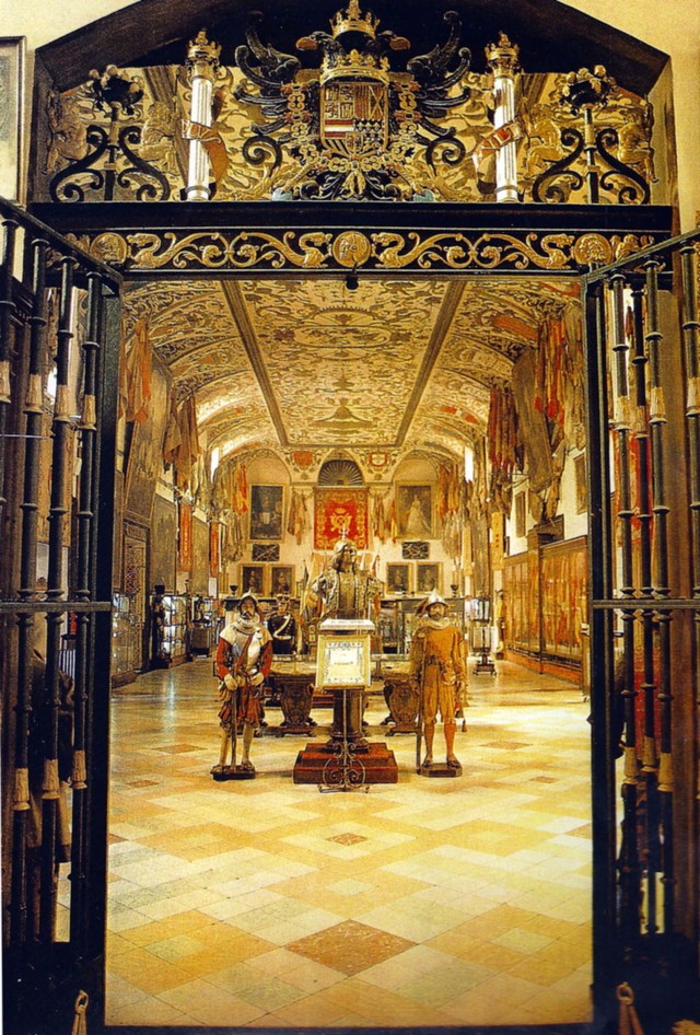c) Que, aunque, el valor de los museos es el de sus colecciones y no el de los inmuebles que las acogen, en el caso del Museo del Ejército ambas cosas están fundidas en una sola, pues al ocupar en 1814 las estancias vacías del Salón de Reinos, en el que se exaltaron en su día los hechos de Armas de los últimos Austrias (los cuadros de Batallas) y la circunstancia de que allí mismo, entre los cinco ecuestres de Velázquez, luciesen los reyes Felipe III y Felipe IV el atuendo y atributos de Capitán General, los muros del Salón de Reinos recuperaron su primigenio destino de mantener en el ambiente la exaltación de lo castrense, por lo que, pasados casi dos siglos, con la impronta del movimiento romántico, se confundieron en una sola entidad, hasta el punto de que solamente de forma traumática pudiesen desgajarse uno de otro. Y así estaban bien las cosas.