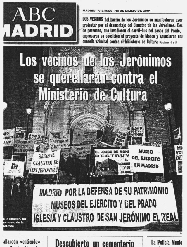 La noticia provocó fuerte oposición entre los expertos, personalidades de la cultura, académicos, catedráticos, etc., que estimaban suficiente el edificio Villanueva, sobre todo desde la adquisición del edificio ALDEASA, en la calle contigua Ruiz de Alarcón, al que se trasladaron todas las dependencias de la administración, incluida la Dirección del museo, que liberó la planta tercera para dedicarla a exposiciones.